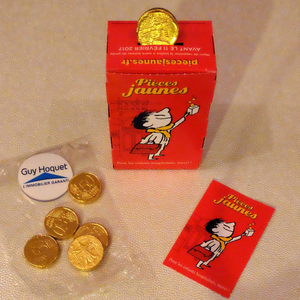 Si ma fille ne vous a pas déjà extorqué toutes votre petite monnaie, vous pouvez aussi la mettre de côté pour la bonne cause. L’opération Pièces jaunes recommence, jusqu’au 11 février. Pour participer à l’opération en faveur des enfants hospitalisés, rendez-vous dans les agences Guy Hoquet l’immobilier pour retirer des tirelires et les rapporter pleines. A vot’ bon coeur m’sieurs dames.