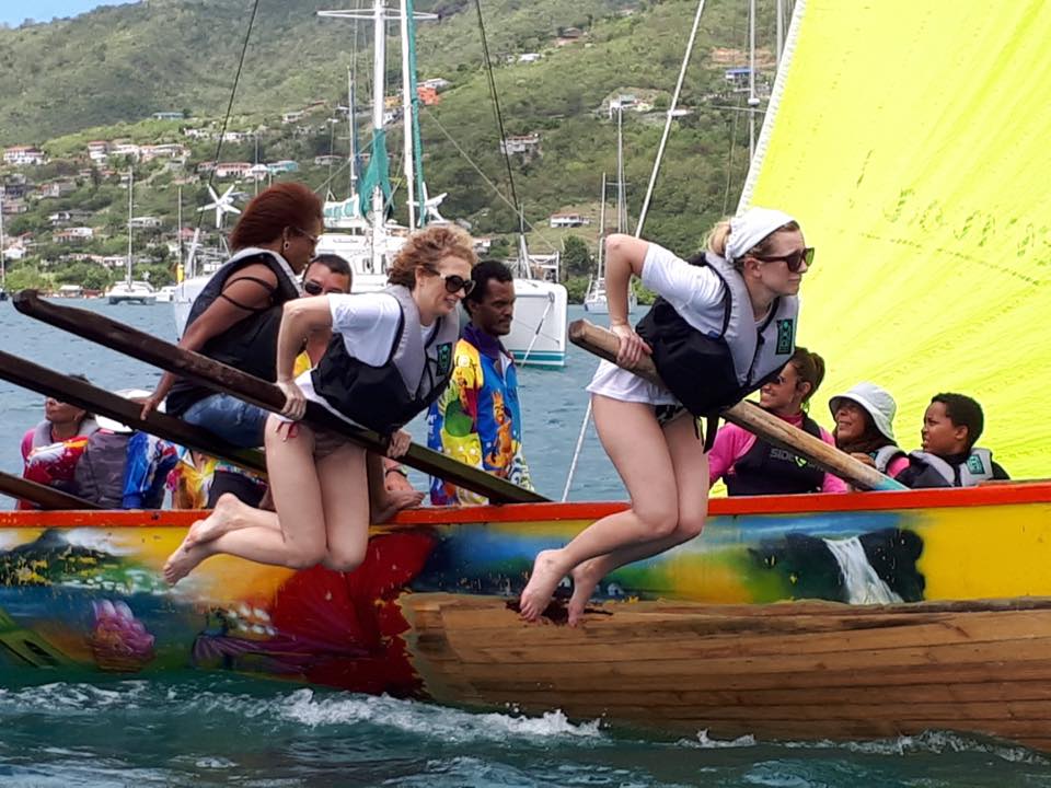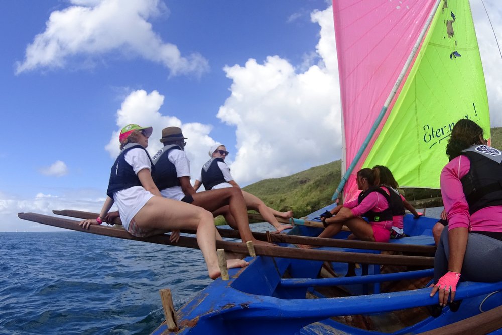 Lors de notre blogtrip, nous avons eu la chance de pouvoir nous initier à la yole avec la team SMEM. Avec mon bras sur deux, c’était une demi chance parce que j’ai juste pu m’asseoir un tout petit peu sur le bois au dessus de l’eau pour voir.