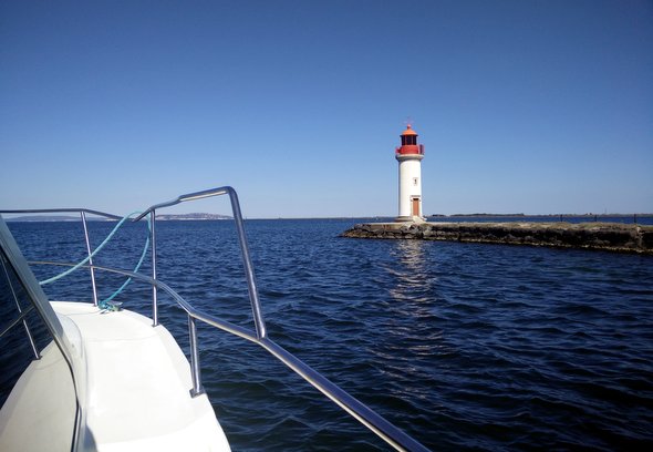 Je déprime toujours le mercredi en vacances, parce qu' »on est déjà à la moitié des vacances. Tu comprends ? Ca passe trop vite« . On a fait demi-tour pour être à Frontignan avant 16h. Si on ne fait pas un aller-simple, c’est important de tenir un journal de bord avec le nombre d’heures de navigation d’un point à un autre, histoire de programmer le retour sans avoir à naviguer des heures et des heures le dernier jour.
