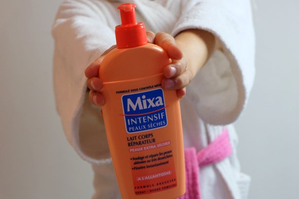 Chez nous, mère et fille l’ont adopté (d’ailleurs, dans la famille Mixa, je demande aussi le fils !). Parce que la crème fluide s’étale bien et pénètre sans coller sur le pyjama. Qu’elle vient à bout de la peau de croco de mes petits alligators devenus tout doux pour le câlin du soir. Un bisou qui sent bon la crème et au lit !