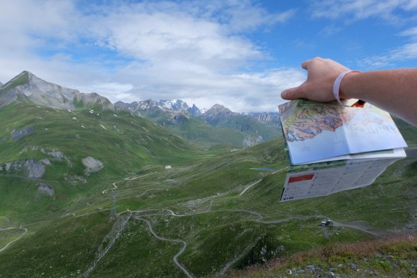 Evidemment qu’on randonne à la montagne. Mais souvent le point de départ des randos nécessite quelques kilomètres de voiture. Heureusement, La Rosière a édité une carte des randonnées (payante) qui nous a permis de repérer les randonnées accessibles à pieds depuis le centre, en prenant juste le téléphérique par exemple.