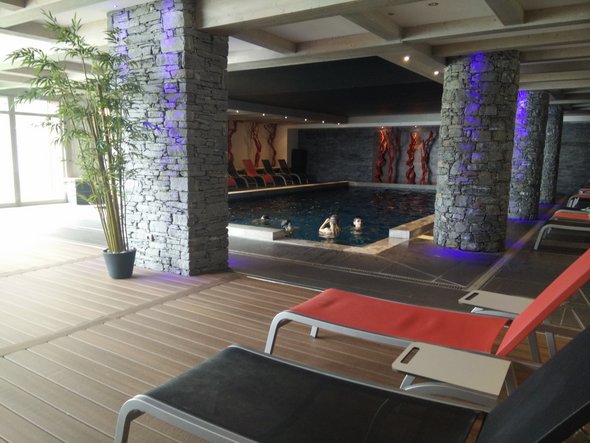 Les Cimes blanches sont plus excentrées (à 15 minutes du centre en empruntant un chemin boisé plein de petits écureuils gris), idéal quand on recherche le calme (sans la grue évidemment) et la piscine est l’une des plus magnifiques que je n’ai jamais vue, avec une vue incroyable et deux jacuzzis. Côté déco, c’est plus rustique, moins moderne. Disons que ça fait plus montagne. Les Cimes Blanches ont surtout l’avantage d’être au pied des pistes l’hiver.