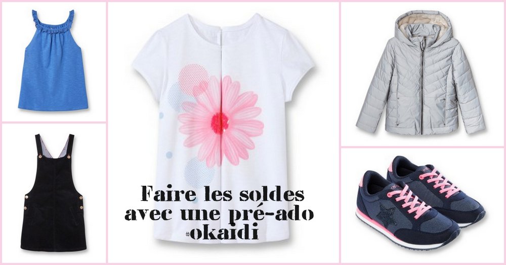 À la demande de la marque, j’ai laissé ma pré-ado à moi faire sa sélection soldes chez Okaïdi. Et j’ai validé TOUT son panier. Il faut dire que c’est une des rares enseignes dans lesquelles on tombe toujours d’accord, parce qu’on n’y trouve ni dentelles, ni talons-hauts, bref, rien de vulgaire en taille 12 ans.