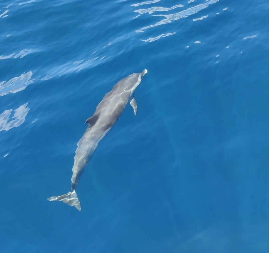 Et puis un dauphin près du catamaran, puis deux, puis trois, puis toute la tribu. La valse des dauphins, deuxième round.